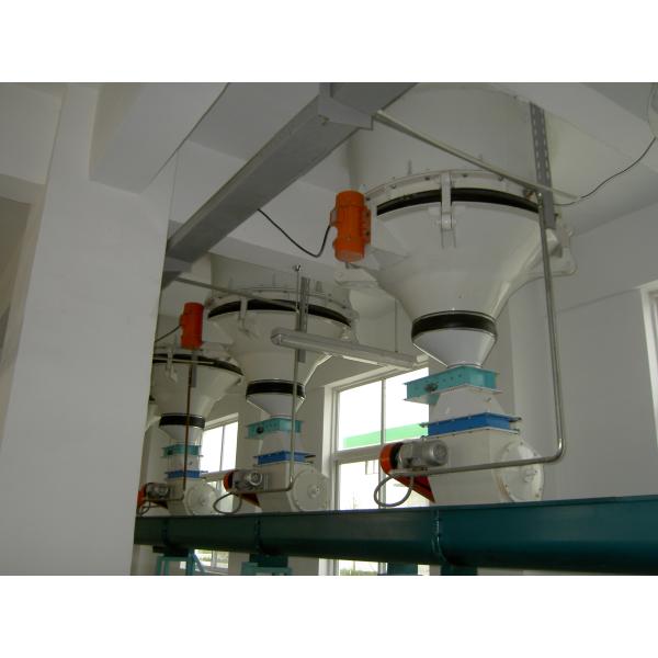 Installed under the dampened wheat bins, flour bins, bran bins for the materials being discharged continuously.